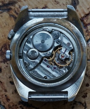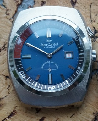 Cette Jean Cardot emboite un calibre 2605 de la Fabrique de Montres de Tchistopol dans un boîtier de type « Compressor » avec une lunette intérieure.