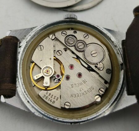 Mentions sur le calibre : 2614B et n° de série (59155) sur la platine, 17 JEWELS sur le pont