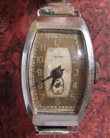 Mécanisme : Ce modèle n’avait alors pas de nom, c’est de mécanisme pour Zvezda (le rochet est marqué ainsi) ; c’est version soviétique du Lip T18 à 15 rubis qui sera appelé ultérieurement 1802.