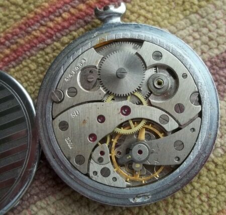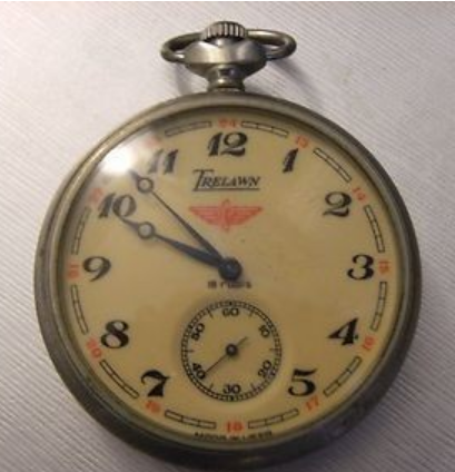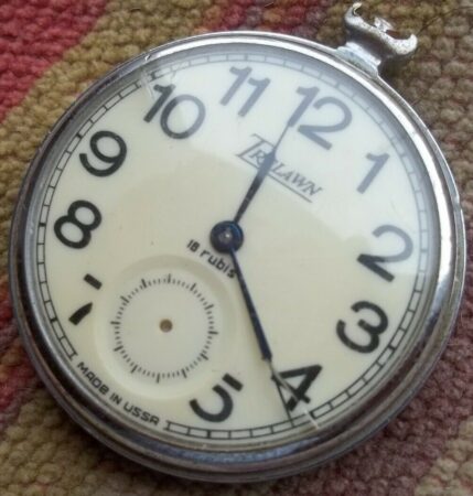 Montre de poche type « savonnette » produite par la Fabrique de Montres de Tcheliabinsk et de marque Trelawn.