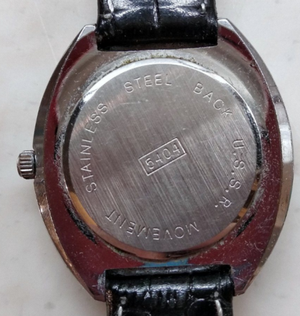 Elle emboîte un calibre 2609.H de la 1ère Fabrique de Montres de Moscou.