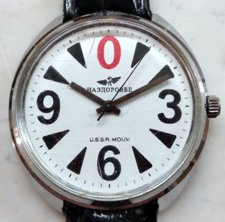 Hаздровие (« Nasdrovie », marque obscure, non-officielle, destinée au marché italien, et peut-être même partiellement produite en Italie, imitant la fameuse Raketa « Big Zero », mais avec un zéro rouge (inspiré du classique douze rouge).