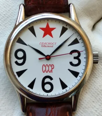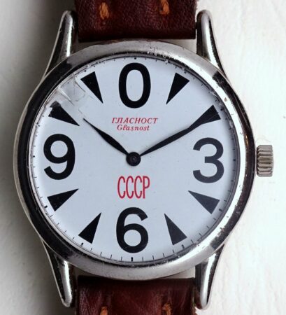 Cette Гласность/Glastnost est une marque obscure, non-officielle, destinée au marché italien, et peut-être même partiellement produite en Italie, imitant la fameuse Raketa « Big Zero ».