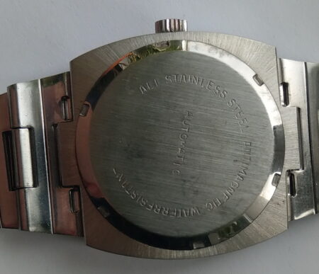 Marque sinon française, du moins destinée au marché français (toutes les mentions sur le cadran sont en français). Elle emboite un mécanisme 2414 de la 1ère Fabrique de Montres de Moscou.