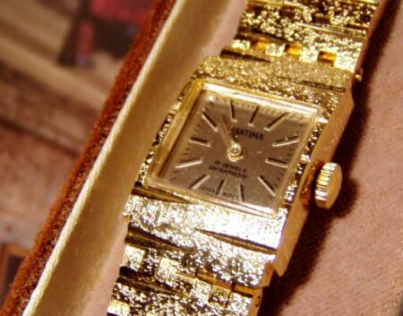 Montre pour dame de marque Santima, produit à Hong-Kong dans les années ’70.Elle emboite un calibre 1601 de la 2e Fabrique de Montres de Moscou.Voir ici pour les montres soviéto-hong-kongaise