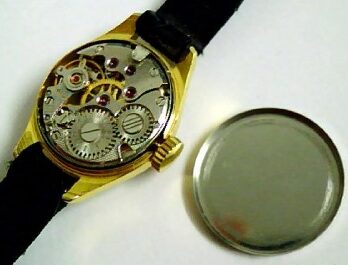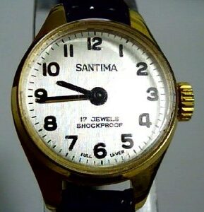 Montre pour dame de marque Santima, produit à Hong-Kong dans les années ’70.Elle emboite un calibre 1601A de la Fabrique de Montres d’Ouglitch.Voir ici pour les montres soviéto-hong-kongaise