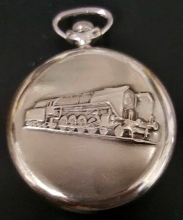 Montre de poche (type « savonnette ») de marque Сахаров, produite par la Fabrique de Montres de Tcheliabinsk. Elle était sans doute destinée au marché italien (en tout cas les exemplaires de secondes mains se trouvent en Italie).