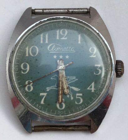 Cette montre-bracelet de marque Clometta emboƮte un calibre 2609.HA de la Fabrique de Montres de Petrodvorets.