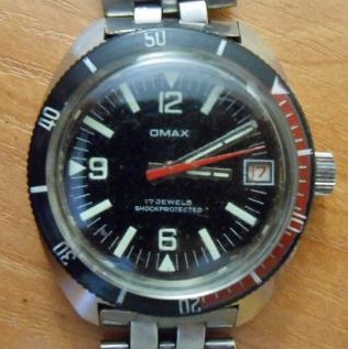 Il existe cependant une plongeuse Omax de facture différente (de bien meilleure qualité), avec une typographie différente, et qui emboite un Poljot 2609: