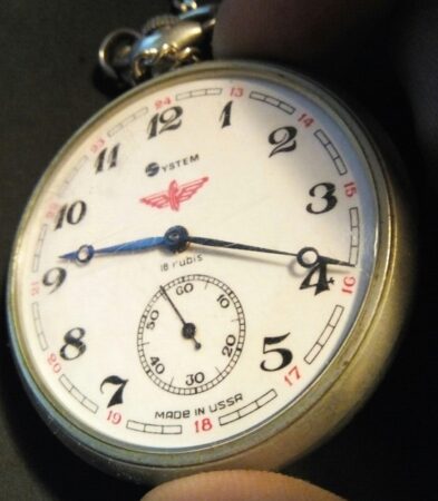Montre de poche (type « savonnette ») de marque System, produite par la Fabrique de Montres de Tcheliabinsk.