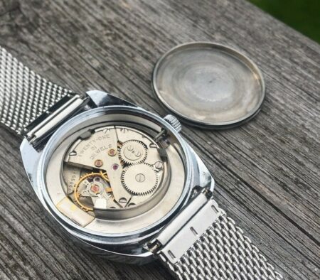 Cette Princeton emboite un 2409 de la 1ère Fabrique de Montres de Moscou.Le boitier semble aussi celui d’un modèle Poljot.Elle semble toute entière avoir été produite en URSS.