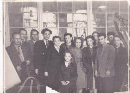 L’équipe du Département de mécanisme et automatisation (département des nouvelles techniques) de la 2e Fabrique de Montres de Moscou, le 30 avril 1958. (en savoir plus sur ce document)