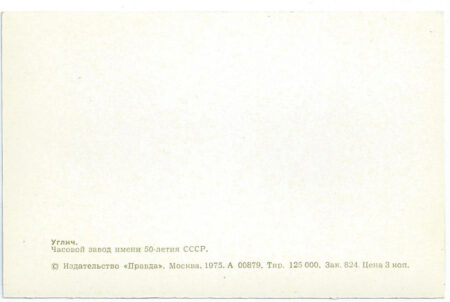 Ouglitch / Fabrique de Montres « 50e anniversaire de l’URSS » / Maison d’Édition « Pravda », Moscou, 1975, Tir[age] 125.000, Com[mande] 624, prix 3 kop[eks]