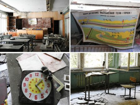 Une Norma abandonnée dans l’école n°3 de Prypiat, dans la zone contaminée de Tchernobyl: