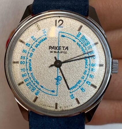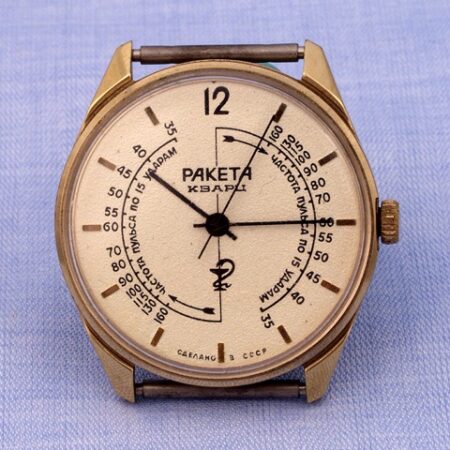 Moins connue, la Raketa 2356 (boitier plaqué or)