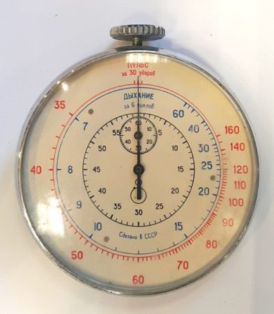 Il faut compter 15 pulsations cardiaques dès que la trotteuse passe sur 12h (caractère latin) ou 6h (caractère cyrillique) A la quinzième pulsation, la trotteuse indique le rythme cardiaque.
