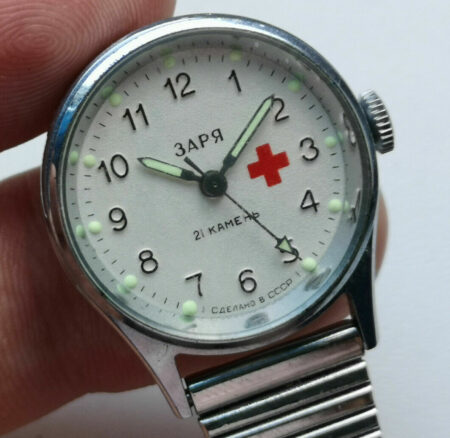 Les montres pour infirmière à fixation par broche ont été produites en URSS par la Fabrique de Montres de Penza