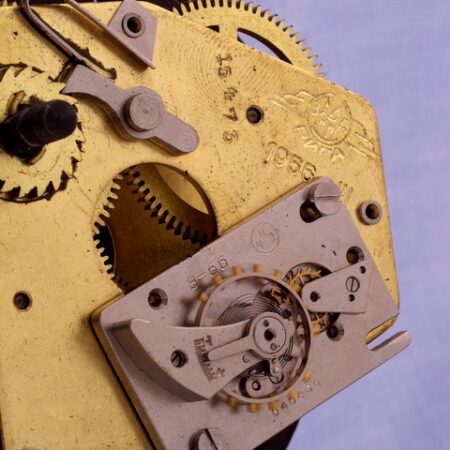 Sur le mécanisme: le logo de la fabrique de Riga, le n° de série (15475) et le millésime: 3e trimestre 1966.