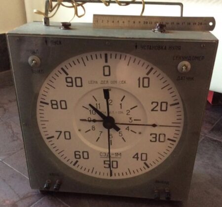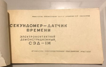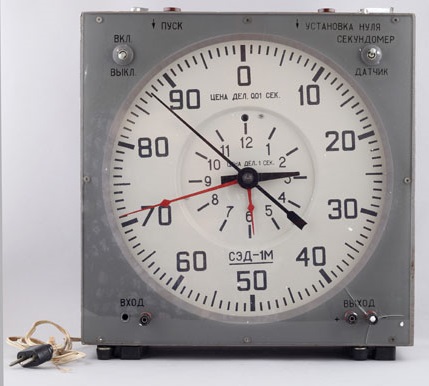 Le chronomètre électromécanique de démonstration de type СЭД-1M (SED-1M) fonctionne comme un compteur d’intervalles de temps avec une durée allant jusqu’à 12 secondes et comme un capteur de temps avec une durée de 0,25 seconde jusqu’à 11,75 seconde.