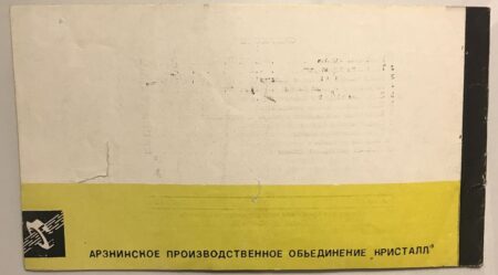Elle avait été fondée au début des années ’70 sous le nom d’Association de Production « Cristal » d’Arzni (Арзнинском производственном объединении «Кристалл»), Arzni (Արզնի) étant un localité arménienne. Voici d’ailleurs un modèle identique, mais de 1976, portant cette dénomination: