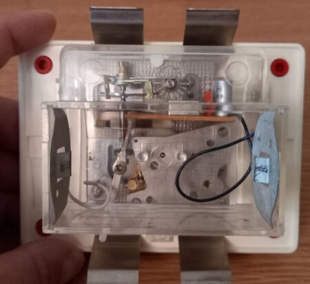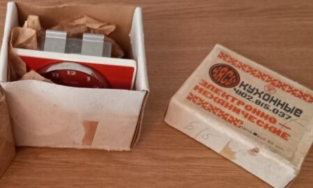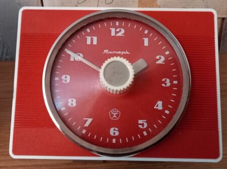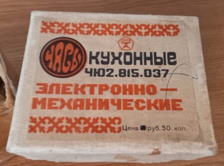 Cette « horloge de cuisine électromécanique » (электромеханические кухонные часы) a été produite dans les années ’80 par la Fabrique d’Horloges d’Orel.