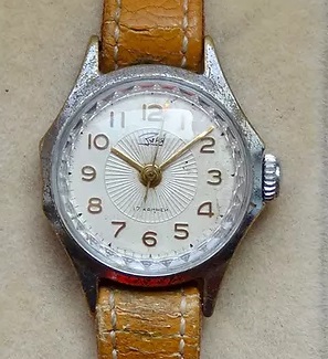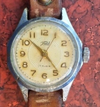 Remarques: avec bouclier anti-magnétique; sur le cadran, la mention « 17 rubis » est en français ce qui est tout à fait inhabituel.