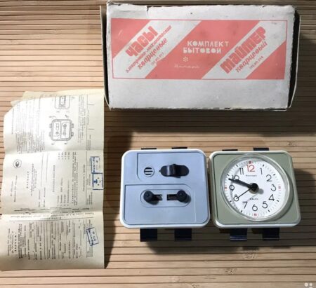 Minuteurs à quartz Yantar de la Fabrique d’Horloges d’Orel.Modèle: ГP2.815.298Produits en février 1992.Vendu avec avec un réveil à quartz ГP2.815.297 (à droite)