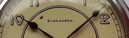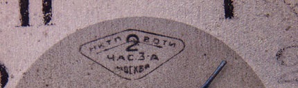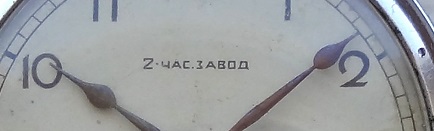 Les premières montres de la 2e Fabrique de Montres de Moscou étaient des K-43 qui n’avaient pas de marque mais qui portaient la mention de la fabrique d’abord sous la forme de ce logo