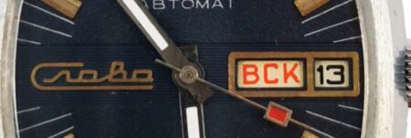 Attention, les Slava avec la typographie ci-dessous n’ont pas été produite par la 2e Fabrique de Montres de Moscou mais par la S.A. Slava à Besançon