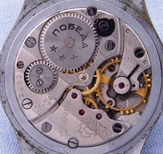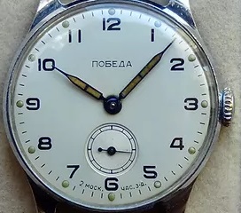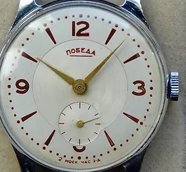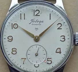 En 1953, la fabrique commence à produire des Pobeda, et puis d’autres modèles (Start, Era, etc.). Les premiers modèlent porte la marque, avec des graphies diverses, et les initiales de la fabrique à 6 heures: