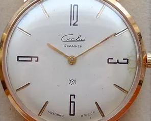 Les premières Slava voient le « C » très large, elle ont aussi sur le cadran le premier logo de la fabrique: