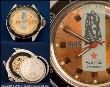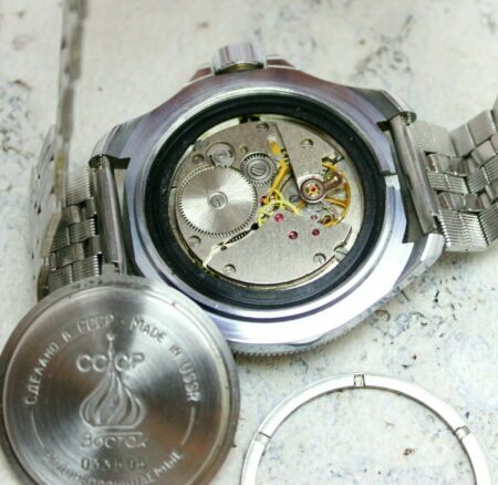 Mentions sur le calibre : Logo Vostok (B dans un cercle)