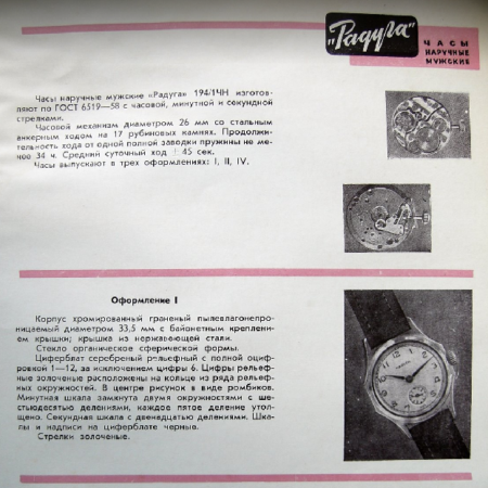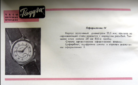 Combinaison du modèle (Оформление) 1 (cadran/aiguilles) et du modèle 4 (cadran/boîtier) au catalogue 1960: