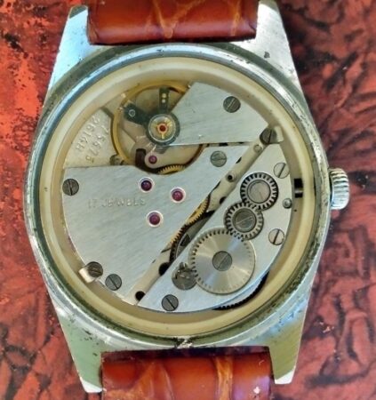 Mentions sur le calibre : 2614B et n° de série (75675) sur la platine, 17 JEWELS sur le pont