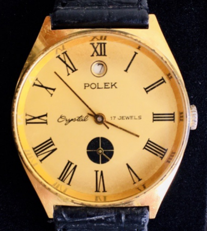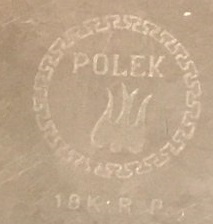 Le logo « Polek » (le 18KRPG indique un très fin plaquage en or liée à un métal de base):