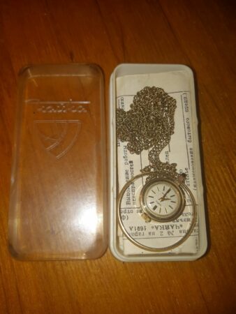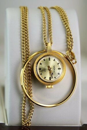 Montre mécanique pendentif pour dame, plaquée or, de la Fabrique de Montres « Tchaïka », à Ouglich