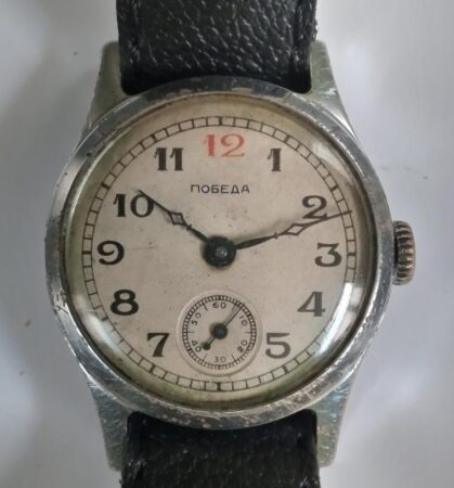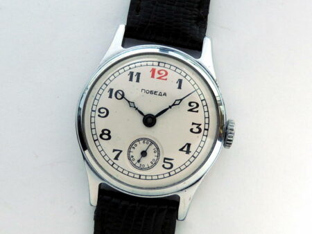 Le « 12 rouge » est le plus anciens modèle de Pobeda, produit dès 1946 dans la Fabrique de Montres de Penza. La Fabrique de Montres de Tchistopol en commence la production en 1949.