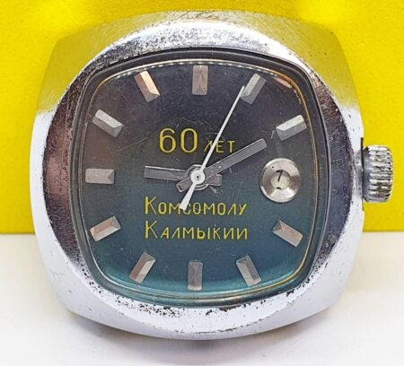 Montre automatique célébrant les 60 ans des Jeunesses Communistes (Komsomol) de Kalmoukie produite par la Fabrique de Montres de Penza en 1978.