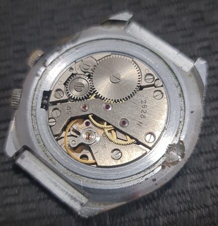 Mentions sur le calibre : 2628.H, SU (Soviet union), logo Raketa (raquette symbolisée) sur la platine.