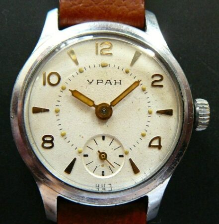 Mentions sur le cadran: Уран et ЧЧЗ (initiales de la fabrique, à six heures)