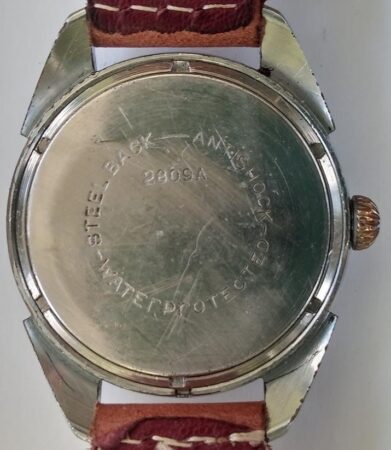 Gravure sur le fond : antishock – steel back -waterprotected, 2809A. Perlage à l’intérieur.