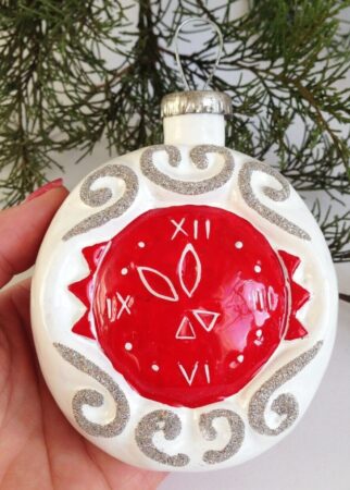 Curieusement, les boules en forme d’horloges ou de montre étaient un grand classique des arbres de Noël soviétiques.
