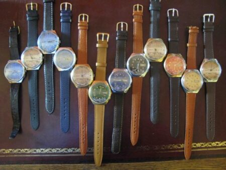 Ce qui fait douze variantes à l’origine puisque chaque type existera en modèle normal (en cyrillique) ou export (en caractères latins), et puis plus encore parce que toutes les combinaisons cadran/boîtier seront produites.