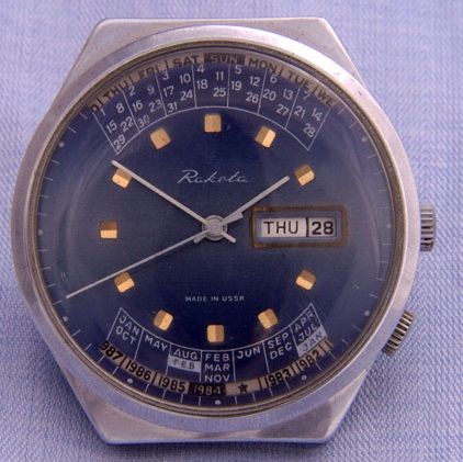 Montre bracelet, mécanique, à calendrier perpétuel, pour l’exportation, produite par la Fabrique de Montres de Petrodvorets