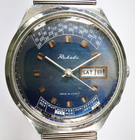 Mentions sur le calibre : 2628.H, SU (Soviet union), logo Raketa (raquette symbolisée) sur la platine.