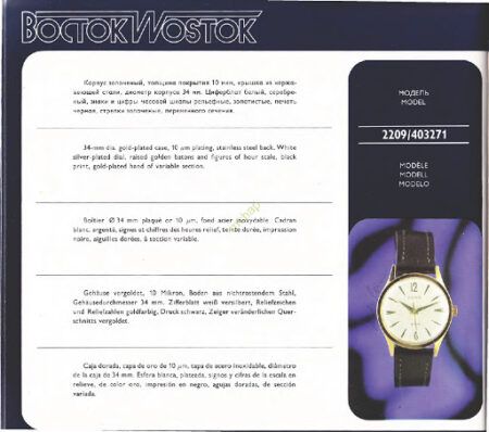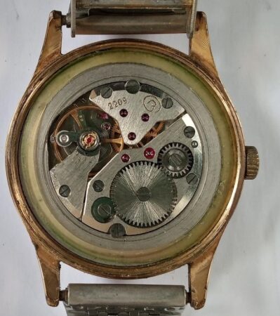 Mentions sur le calibre : n° de série (41756) sur la platine, logo Vostok (B dans un cercle) et 2209 sur un pont.