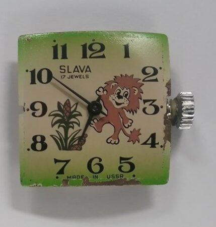 Mentions sur le cadran : 17 jewels (au-dessus de l’axe des aiguilles), made in ussr (à six heures)