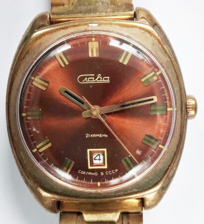 Mentions sur le cadran : 17 камней (au dessus de l’axe des aiguilles), cделано в cccp (à six heures)