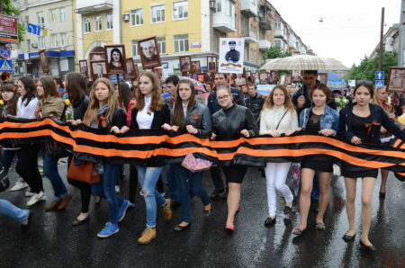 Mais aussi lors des défilés du « Régiment des immortels » où les descendants des combattants portent leur portrait à travers les villes de l’ex-URSS: