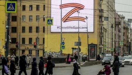 Les autorités russes vont accélérer ce glissement en associant ce symbole à l’invasion de l’Ukraine de 2022: